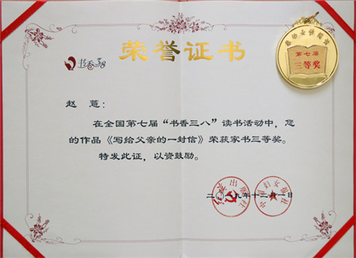 全國第七屆“書香三八”讀書活動(dòng)啟動(dòng)后,冶煉分公司工會(huì)高度重視,以“爭做讀書先鋒·逐夢幸福云錫”為活動(dòng)主題,將讀書活動(dòng)與提升女職工素質(zhì)緊密結(jié)合、與引導(dǎo)女職工崗位建功緊密結(jié)合,廣泛動(dòng)員女職工積極參加讀書活動(dòng)。讀書活動(dòng)得到了全司廣大女職工的積極響應(yīng)和熱情參與,冶煉分公司工會(huì)在對(duì)征集到的44篇作品審核的基礎(chǔ)上,向控股公司選送了7篇作品參賽。經(jīng)全國“書香三八”讀書活動(dòng)組委會(huì)評(píng)審,冶煉分公司女職工趙薏的作品《寫給父親的一封信》榮獲家書三等獎(jiǎng),周波的作品《當(dāng)我開始愛自己》榮獲征文優(yōu)秀獎(jiǎng)。