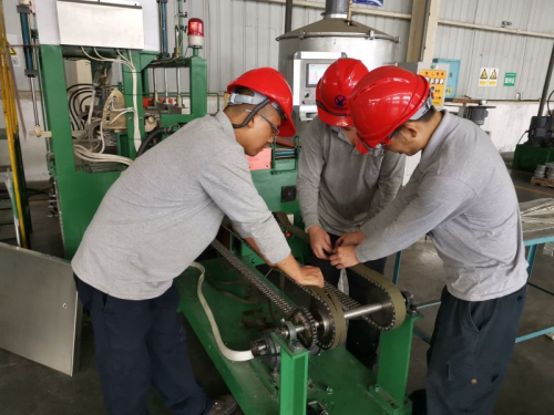 郴州高新材料分公司的無鉛焊條自動(dòng)澆鑄設(shè)備是為了推進(jìn)無鉛焊條生產(chǎn)自動(dòng)化、提高勞動(dòng)生產(chǎn)效率的技改項(xiàng)目和措施,分公司錫材車間員工利用國慶假期時(shí)間,順利開展了調(diào)試無鉛條自動(dòng)澆鑄機(jī)工作,努力解決傳送設(shè)備對(duì)無鉛條外觀造成的不良影響。與此同時(shí),錫材車間員工根據(jù)實(shí)際生產(chǎn)需求,不斷溝通聯(lián)系自動(dòng)澆鑄機(jī)供應(yīng)制造商,不斷對(duì)自動(dòng)澆鑄機(jī)進(jìn)行技術(shù)升級(jí)改進(jìn);面對(duì)設(shè)備調(diào)試中的種種困難,車間的技術(shù)骨干們堅(jiān)守崗位,盡職盡責(zé),認(rèn)真總結(jié)經(jīng)驗(yàn),連續(xù)嘗試更換了4種隔離傳送材料,確保了無鉛焊條自動(dòng)澆鑄機(jī)的生產(chǎn)傳送難題得以較好地解決。