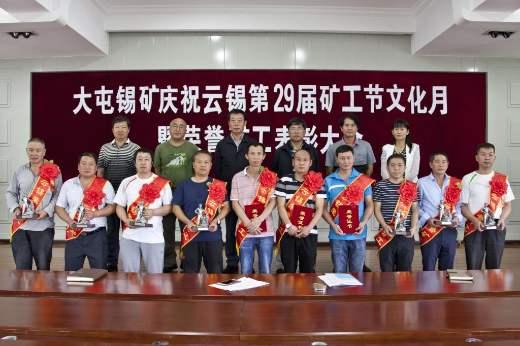 今年大屯錫礦被控股公司授予“榮譽礦工”光榮稱號的分別有從事井下主要工種滿30年的鄭貴良、李智忠;滿25年不滿30年的譚正榮;滿15年不滿25年的毛錫文等7人。大屯錫礦紀委書記武銳宣讀了表彰決定,與會的礦領導向“榮譽礦工”頒發了榮譽證書、獎品及獎金。