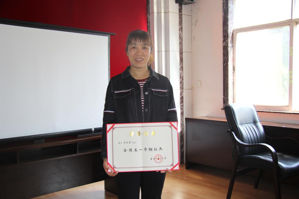 如今,蘇云霞同志獲得了中華全國總工會授予“全國五一巾幗標兵”稱號,更是激勵了廣大女職工立足本職、愛崗敬業、追求卓越、爭創一流,用生命奏響“中國夢勞動美”的動人樂章。