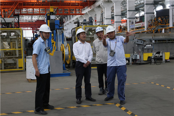 7月16日,控股公司副總經理宋興誠到錫業分公司檢查錫冶煉生產系統優化推進情況。錫業分公司黨委副書記、經理唐都作匯報相關工作情況。