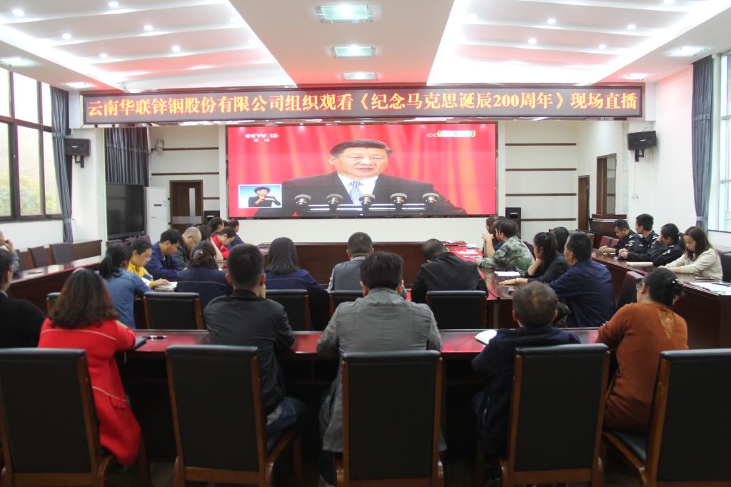 錫業股份干部員工認真收聽收看紀念馬克思誕辰200周年大會實況