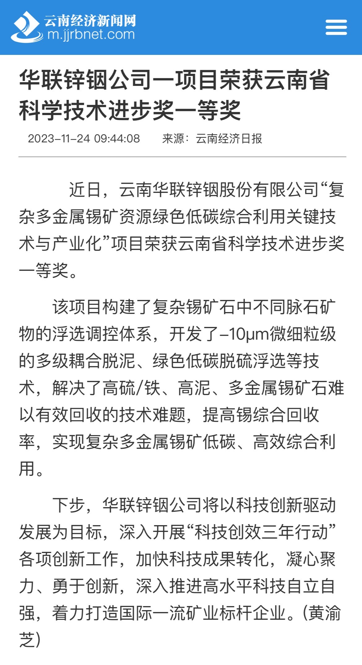 下一條:云南國資、中國有色金屬報:錫業(yè)股份提升資源供給質(zhì)效 筑牢高質(zhì)量發(fā)展“壓艙石”